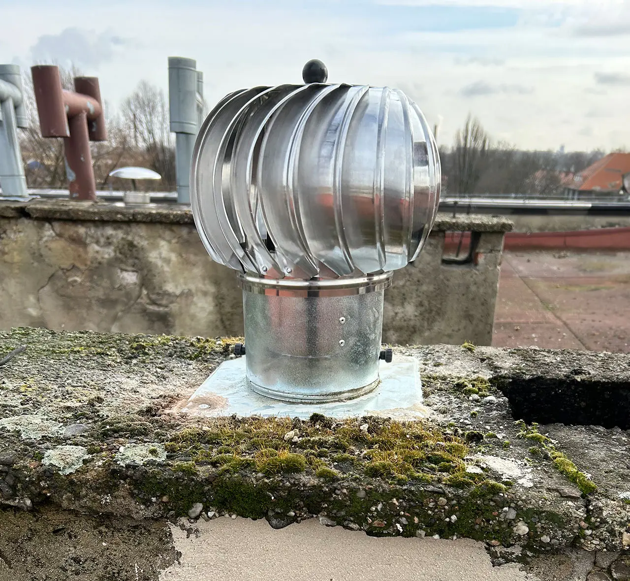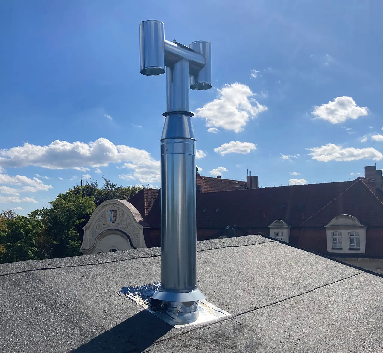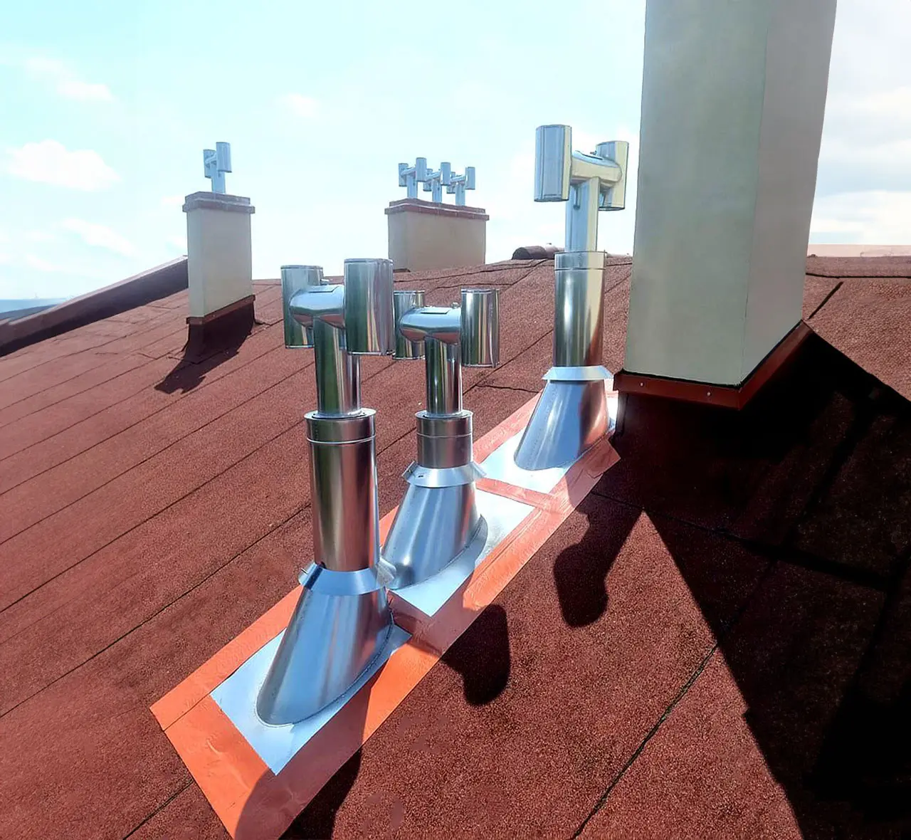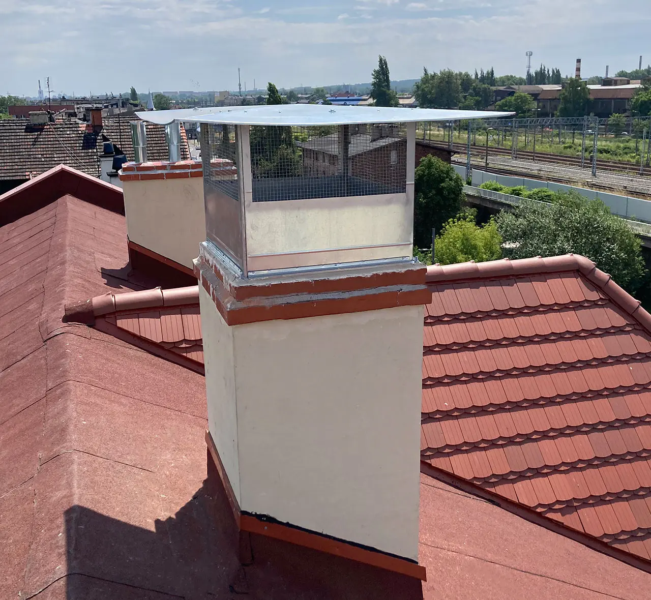 Zainstalowaliśmy nowoczesne nasady kominowe na dachach osiedla, poprawiając wentylację i wydajność systemów kominowych. Prace wykonane starannie i zgodnie z obowiązującymi normami.